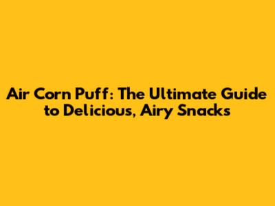 Air Corn Puff: The Ultimate Guide To Delicious, Airy Snacks