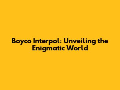 Boyco Interpol: Unveiling The Enigmatic World