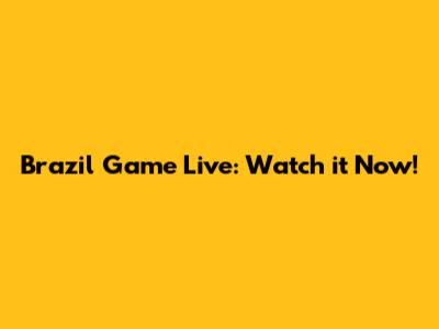 Brazil Game Live: Watch It Now!