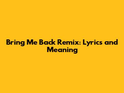 Bring Me Back Remix: Lyrics And Meaning