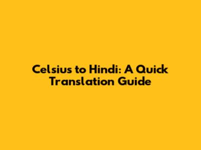 Celsius To Hindi: A Quick Translation Guide