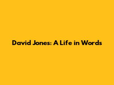 David Jones: A Life In Words