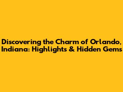 Hey guys! Ever heard of Orlando, Indiana? Probably not the first Orlando that pops into your head, right? But trust me, this little gem in Indiana has its own unique charm and a bunch of cool stuff to explore. So, buckle up as we dive into the highlights and hidden gems of Orlando, Indiana!