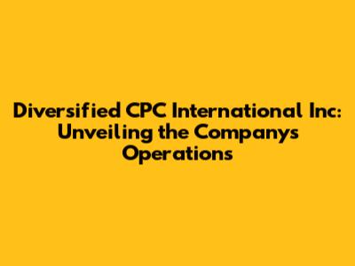 Hey everyone! Today, we're diving deep into the world of Diversified CPC International Inc. We'll explore what this company is all about, what they do, and why they matter. So, buckle up, grab your favorite drink, and let's get started. Understanding Diversified CPC International Inc is like peeling back the layers of a complex yet fascinating onion. It’s not just about what they sell; it’s about how they operate, their impact on various industries, and their potential for the future. The company’s story is one of adaptation, innovation, and a constant drive to meet the ever-changing demands of the market. This article aims to provide a comprehensive overview, breaking down complex information into digestible parts, so you can easily understand what makes Diversified CPC International Inc tick. We'll start with the basics, then move on to the more intricate details, giving you a complete picture of this dynamic company. The goal is to provide a clear, concise, and engaging explanation of their business, shedding light on their operations, strategies, and overall significance in the industry. Whether you're a potential investor, a curious student, or someone just looking to expand your knowledge, this article is for you. We'll examine their key areas of focus, their major achievements, and the challenges they face. By the end, you'll have a solid understanding of Diversified CPC International Inc and its place in the business world. This exploration will not only inform you about the company's activities but also give you insights into the broader industry trends and the forces shaping the market. So, let's get into it, shall we?
