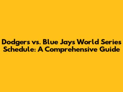 Dodgers Vs. Blue Jays World Series: Dates & Details