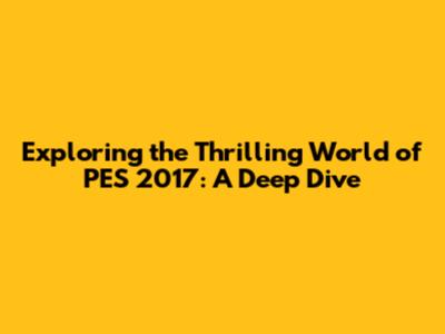Exploring The Thrilling World Of PES 2017: A Deep Dive