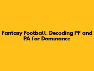 Fantasy Football: Decoding PF And PA For Dominance