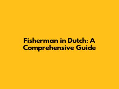Fisherman In Dutch: A Comprehensive Guide