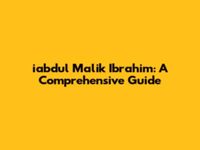 Iabdul Malik Ibrahim: A Comprehensive Guide