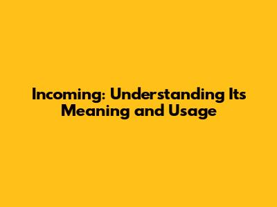 Incoming: Understanding Its Meaning And Usage