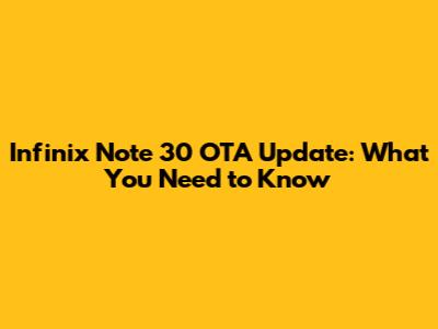 Infinix Note 30 OTA Update: What You Need To Know