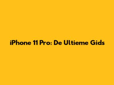 IPhone 11 Pro: De Ultieme Gids