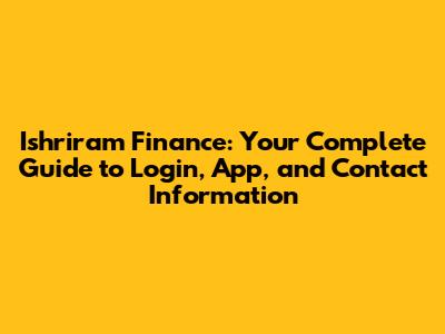 Ishriram Finance: Login, App & Contact Information Guide