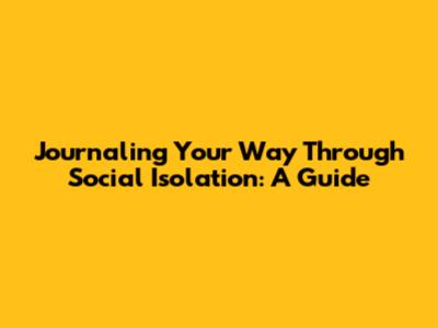 Journaling Your Way Through Social Isolation