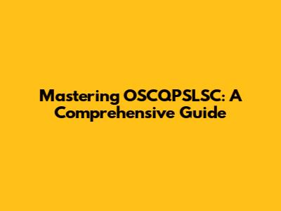 Mastering OSCQPSLSC: A Comprehensive Guide