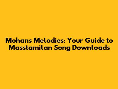 Mohan's Melodies: Your Guide To Masstamilan Song Downloads