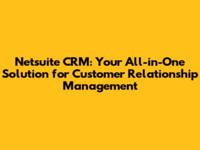 Netsuite CRM: Your All-in-One Solution For Customer Relationship Management
