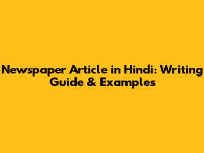 Newspaper Article In Hindi: Writing Guide & Examples