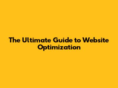 The Ultimate Guide to Website Optimization
