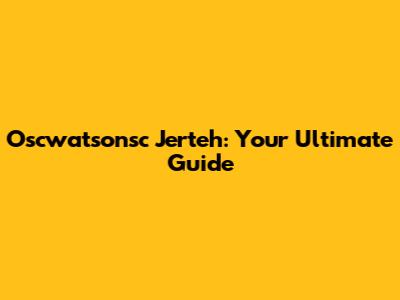 Oscwatsonsc Jerteh: Your Ultimate Guide