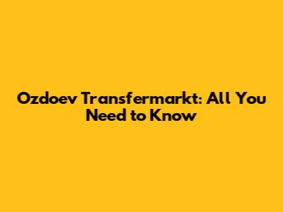 Ozdoev Transfermarkt: All You Need To Know