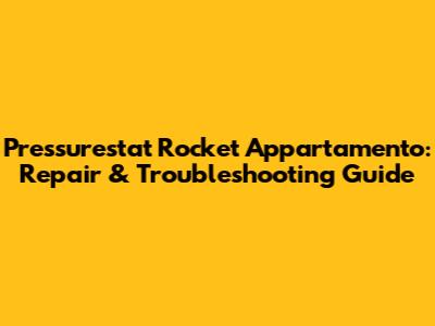 Pressurestat Rocket Appartamento: Repair & Troubleshooting Guide