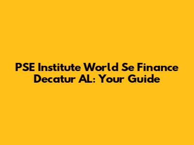 PSE Institute World Se Finance Decatur AL: Your Guide