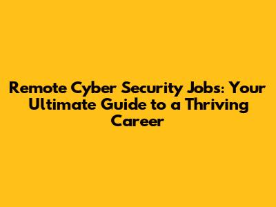 Remote Cyber Security Jobs: Your Dream Career Awaits
