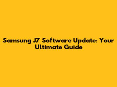 Samsung J7 Software Update: Your Ultimate Guide