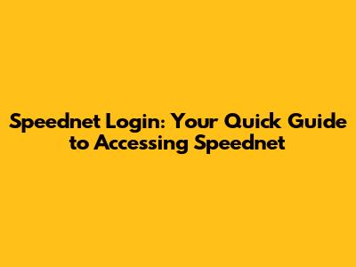 Speednet Login: Your Quick Guide To Accessing Speednet