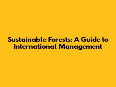 Sustainable Forests: A Guide To International Management