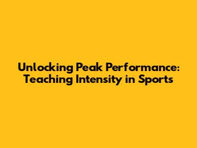 Unlocking Peak Performance: Teaching Intensity In Sports