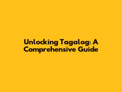 Unlocking Tagalog: A Comprehensive Guide