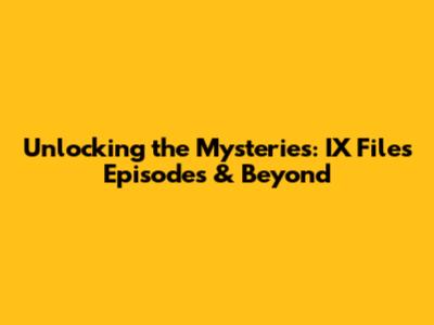 Unlocking The Mysteries: IX Files Episodes & Beyond