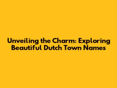 Unveiling The Charm: Exploring Beautiful Dutch Town Names