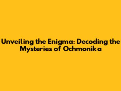 Unveiling The Enigma: Decoding The Mysteries Of Ochmonika