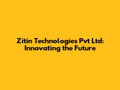 Zitin Technologies Pvt Ltd: Innovating The Future